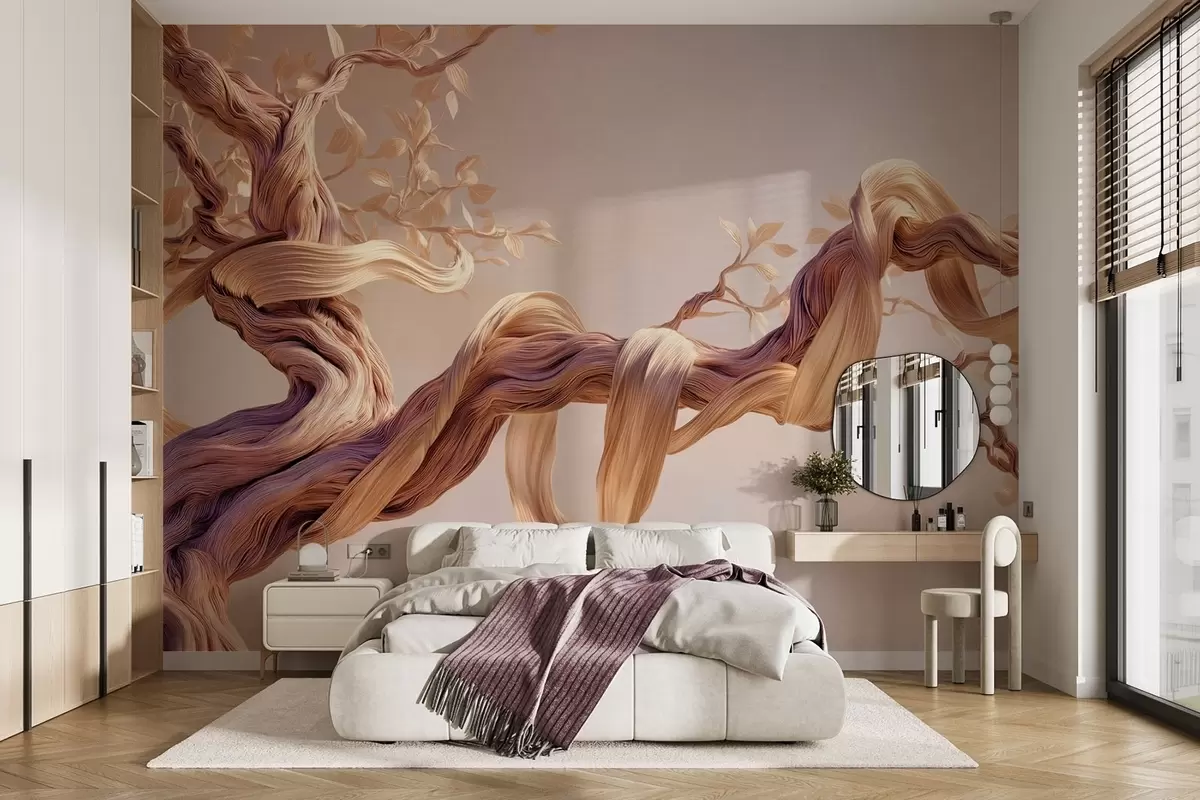 Fototapeten Gedrehter Baumstamm mit dekorativen Blättern N° w09360