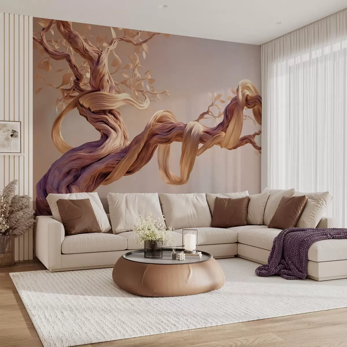 Fototapeten Gedrehter Baumstamm mit dekorativen Blättern N° w09360