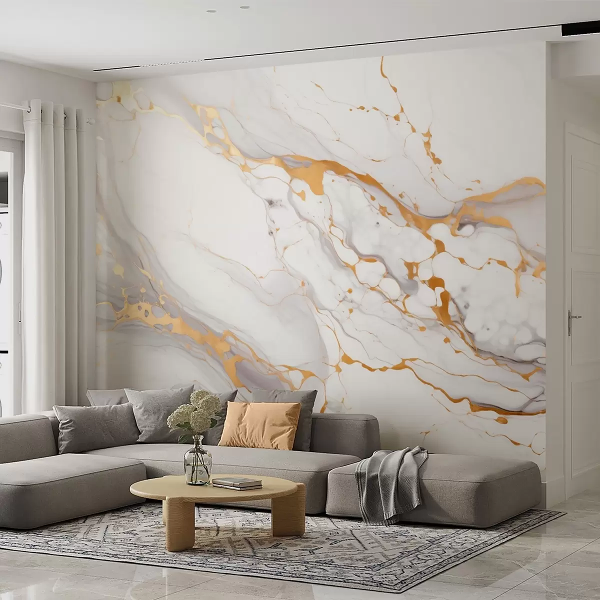 Fototapeten Nachahmung einer Marmorstruktur mit weichen grauen Übergängen und gelben Akzenten N° w09362