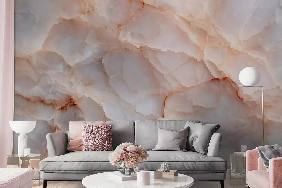 Fototapeten Luxuriöse Marmorimitation in Beige-Grau-Tönen mit schimmerndem Effekt N° w09412