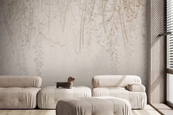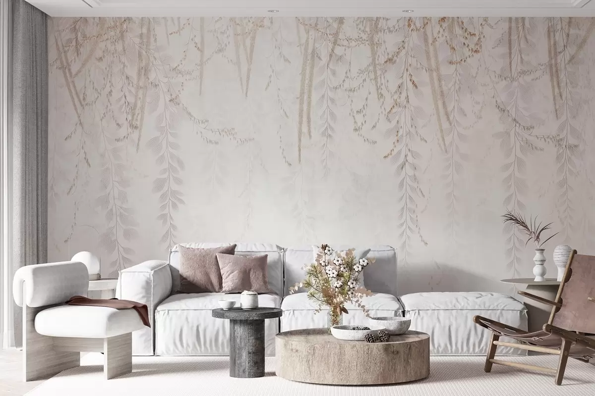 Fototapeten Leichte hängende Blätter und Zweige in Beigetönen N° w09433