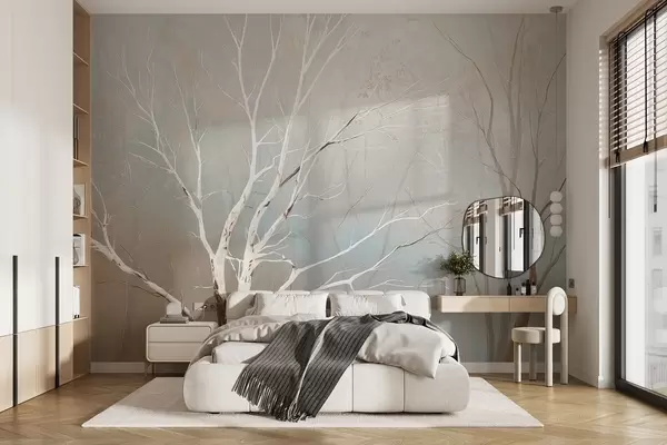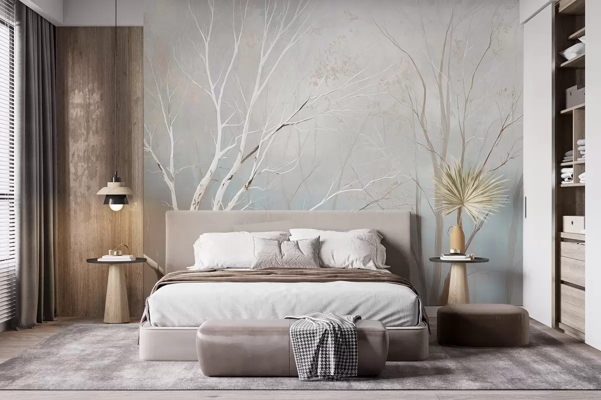Fototapeten Helle Äste im Morgennebel in Pastelltönen N° w09447