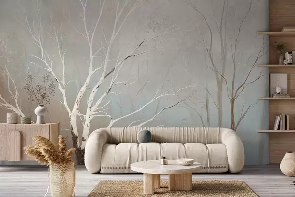 Fototapeten Helle Äste im Morgennebel in Pastelltönen N° w09447