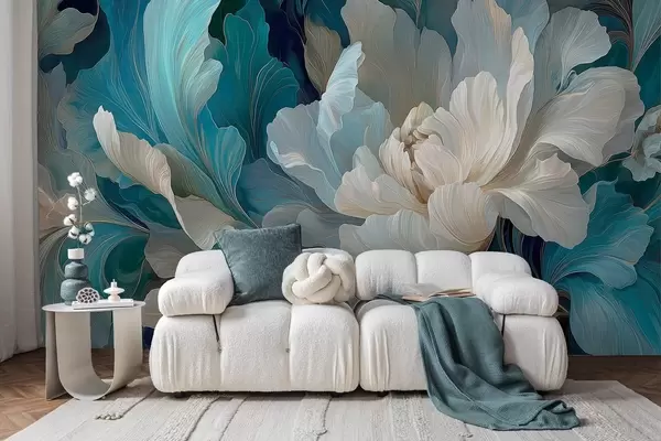 Fototapeten Zarte volumetrische Pfingstrose in kühlen Farben N° w09456