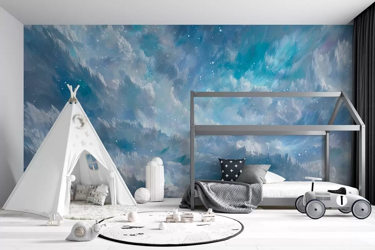 Fototapeten Himmlische abstrakte Wolken in einer kühlen Pastellpalette N° w09459