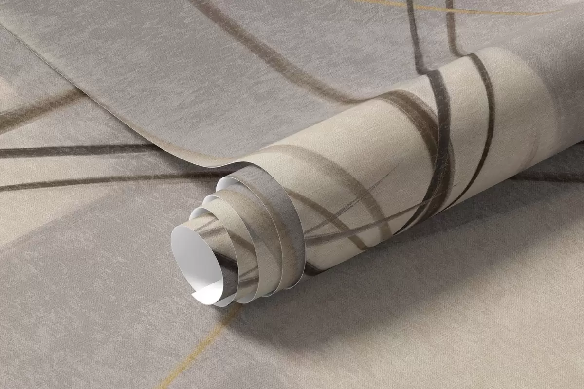 Fototapeten Abstrakter, strukturierter moderner Malstil mit geschwungenen Linien und geometrischen Formen in Grau-, Weiß- und Orangetönen N° w09476