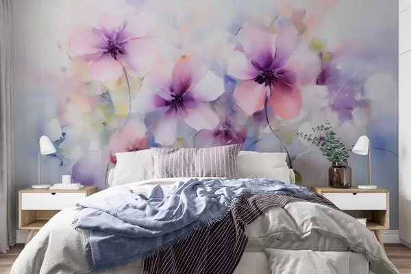 Fototapeten Frühlingsblumen in Rosa- und Violetttönen, Aquarell N° w09502