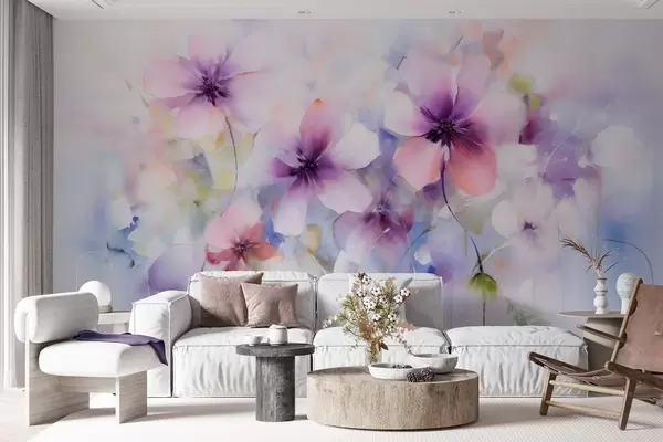 Fototapeten Frühlingsblumen in Rosa- und Violetttönen, Aquarell N° w09502