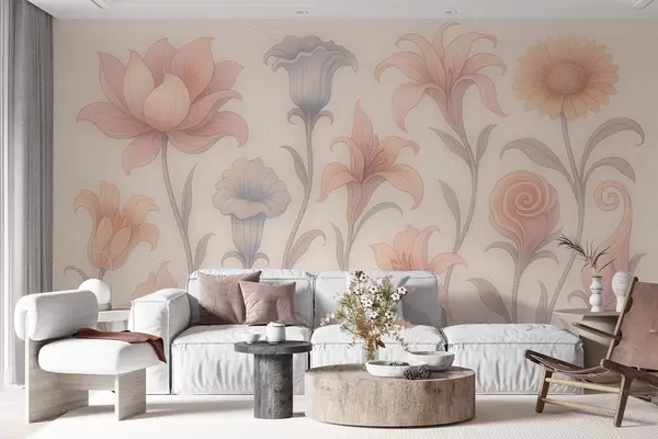 Fototapeten Zarte Blumenkomposition in Pastellfarben N° w09503