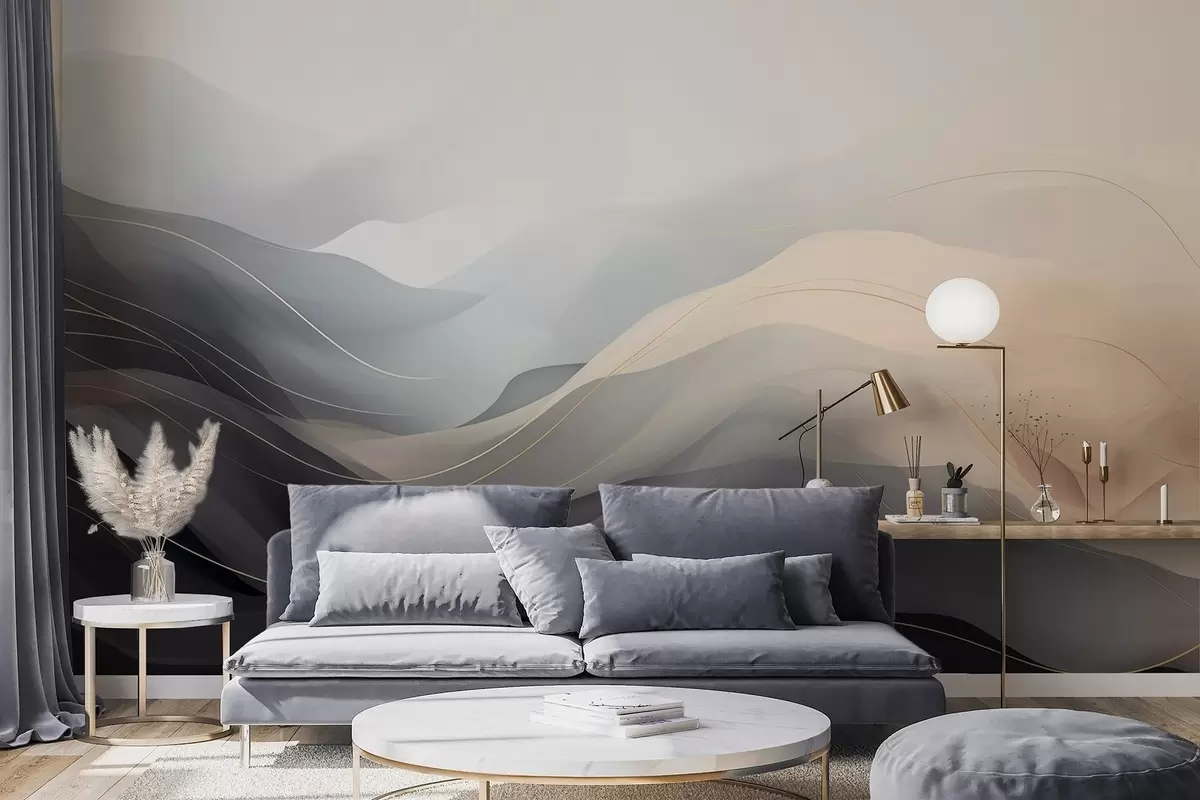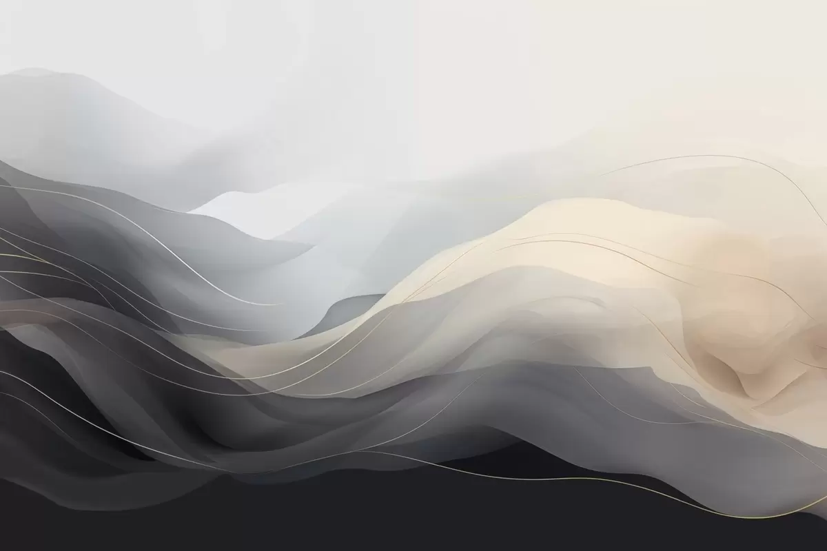 Fototapeten Abstrakte, neblige Wellen in Grau-Creme-Tönen mit gelben Linien N° w09504