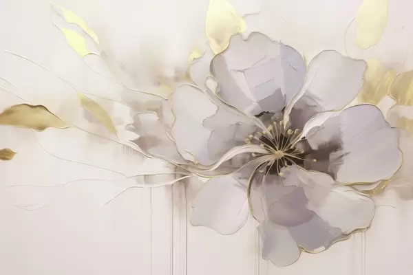 Fototapeten Blaue Blume mit gelben Akzenten in einem abstrakten Pinselstrichstil N° w09505