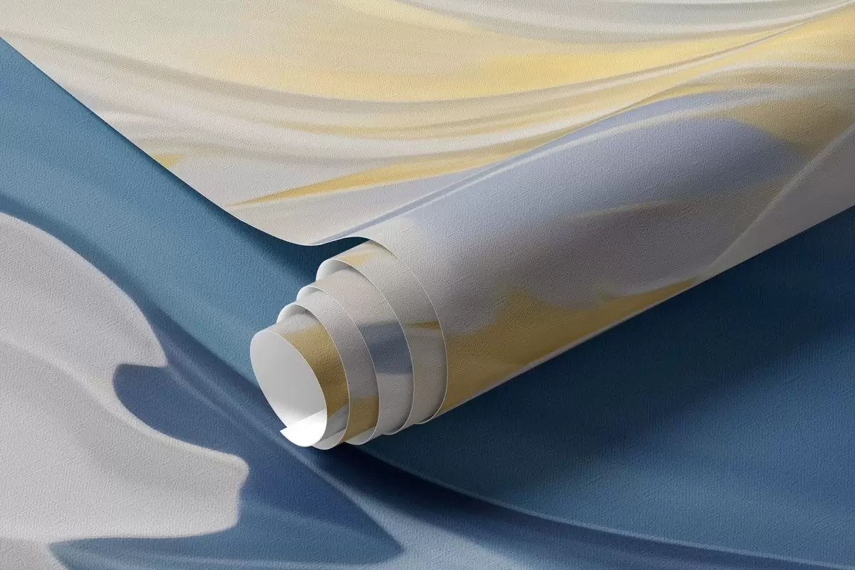 Fototapeten Große weiße Pfingstrose im Ölgemäldestil auf blau-gelbem Hintergrund N° w09511