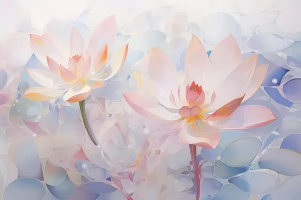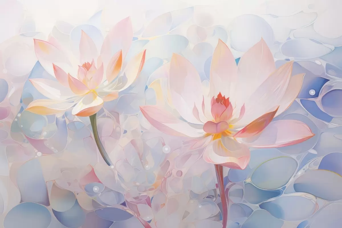 Fototapeten Zarte pastellfarbene Lotusblumen im Aquarellstil N° w09512