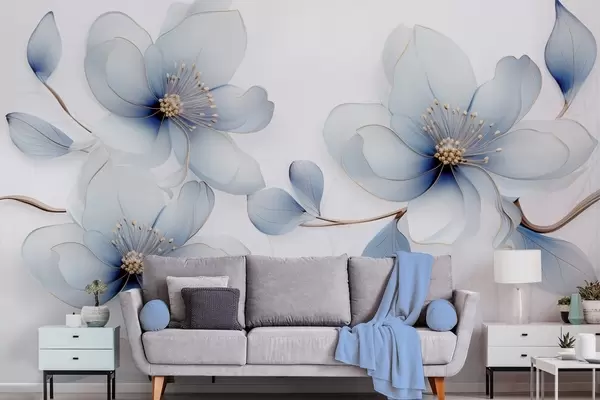 Fototapeten Elegante Magnolienblütenkomposition in Blautönen N° w09520