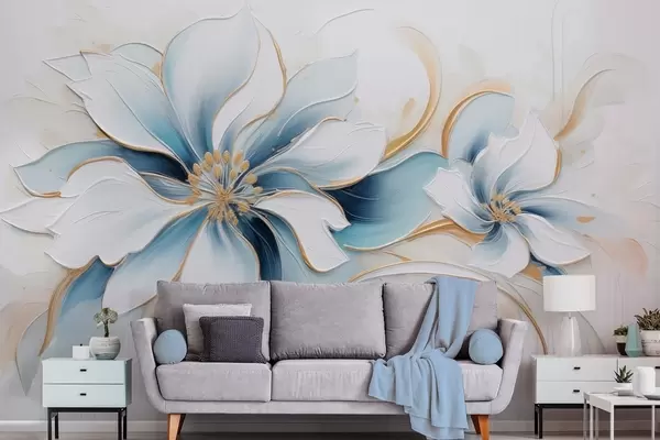 Fototapeten Malerische Abstraktion mit blauen Blumen im Ölgemäldestil N° w09524