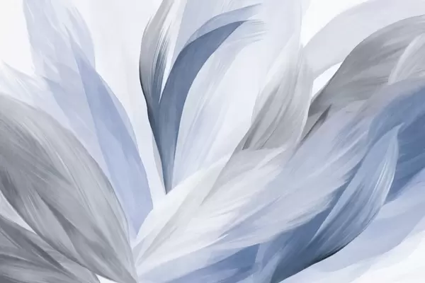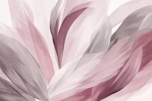 Fototapeten Abstrakte strukturierte Federn in Braun, Weiß und Grau sowie verschiedenen Farbtönen, die sich auf einem weißen Hintergrund überlagern N° w09531