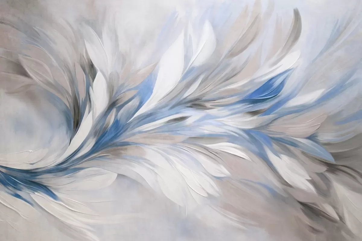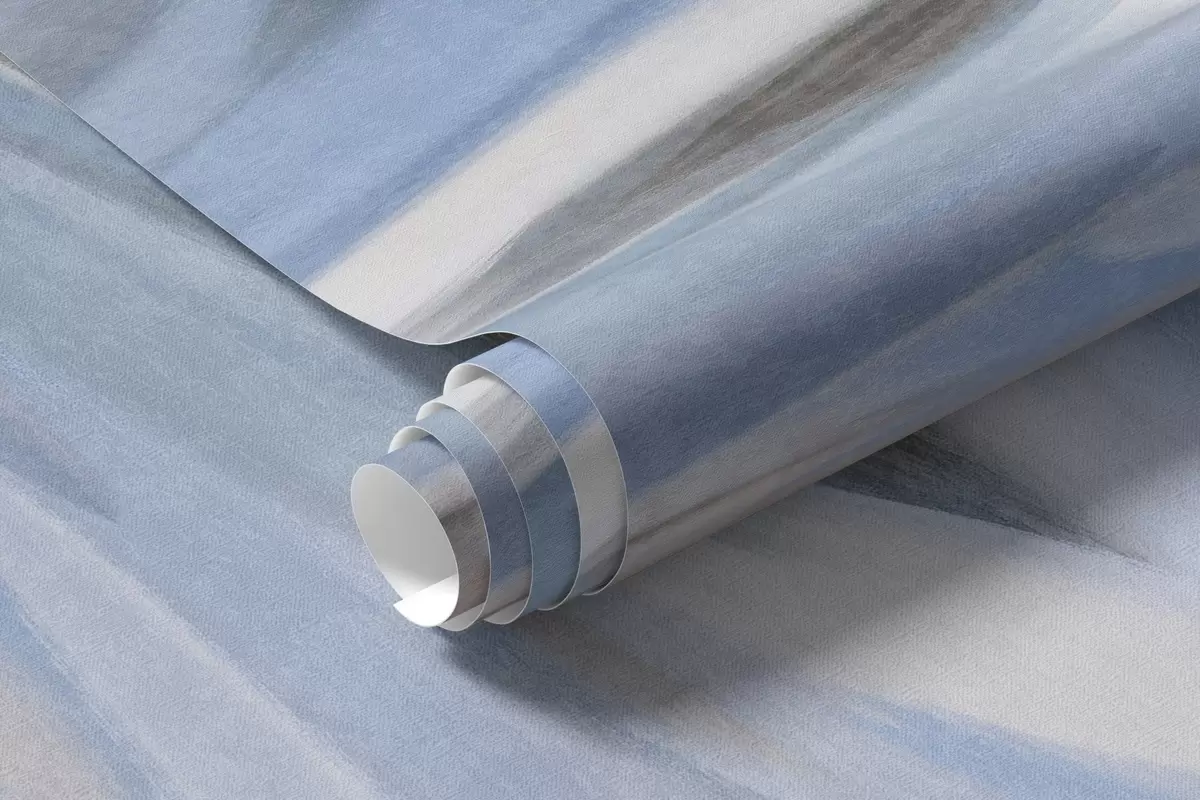 Fototapeten Abstrakter Malstil mit weißen, blauen und grauen strukturierten Pinselstrichen vor einem weichen, hellen Hintergrund N° w09552v1