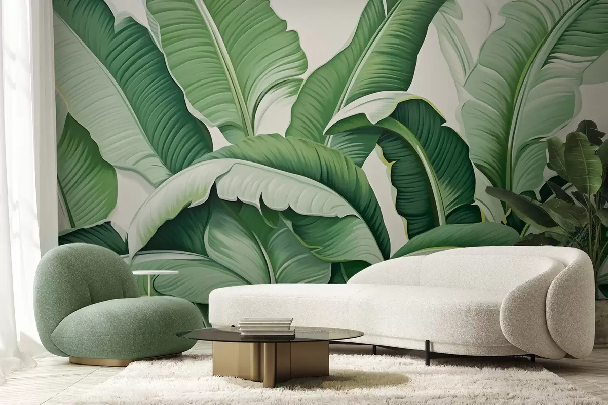Fototapeten Grüne tropische Bananenblätter mit 3D-Effekt N° w09559