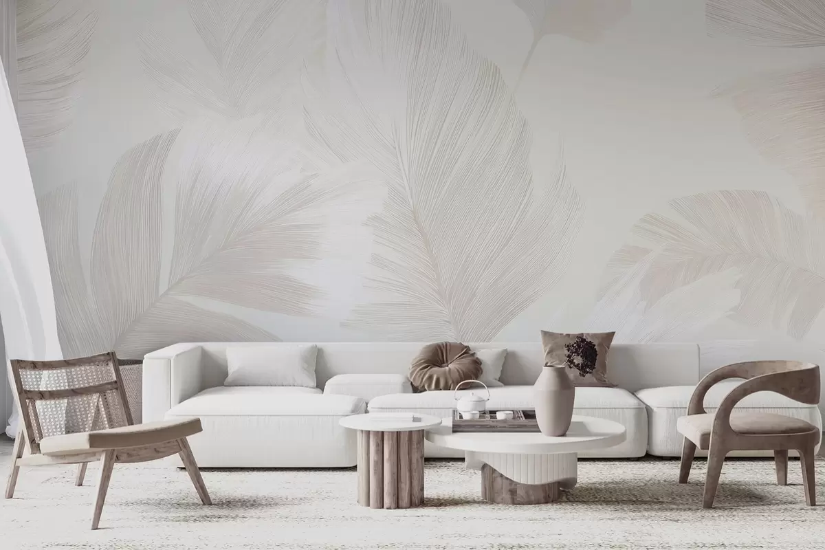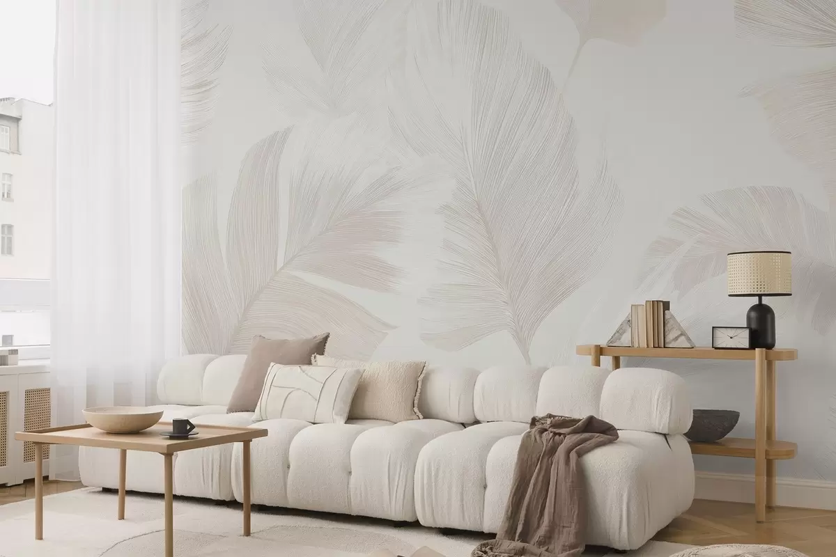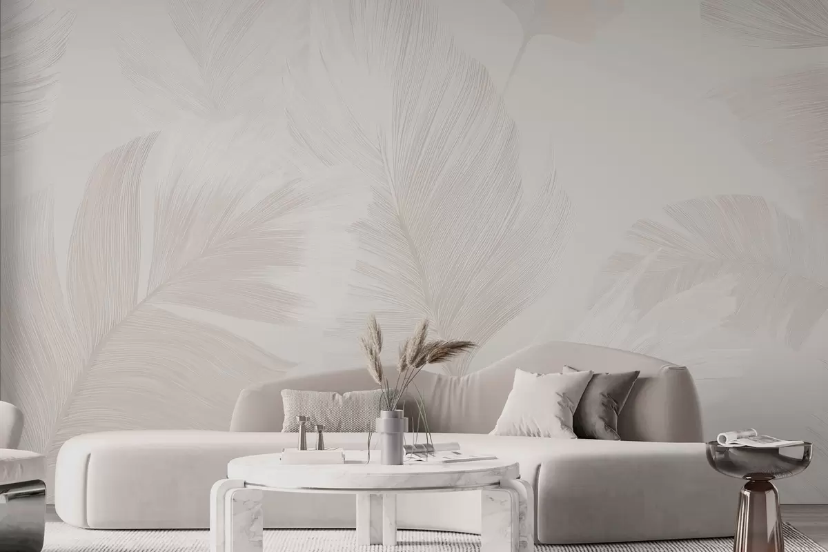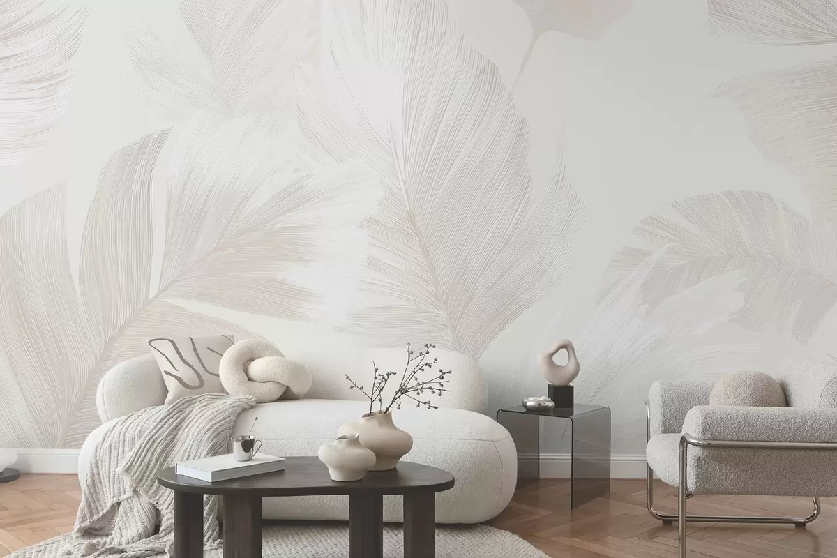 Fototapeten Weiche Elfenbeinfedern in milchigen Beigetönen N° w09563