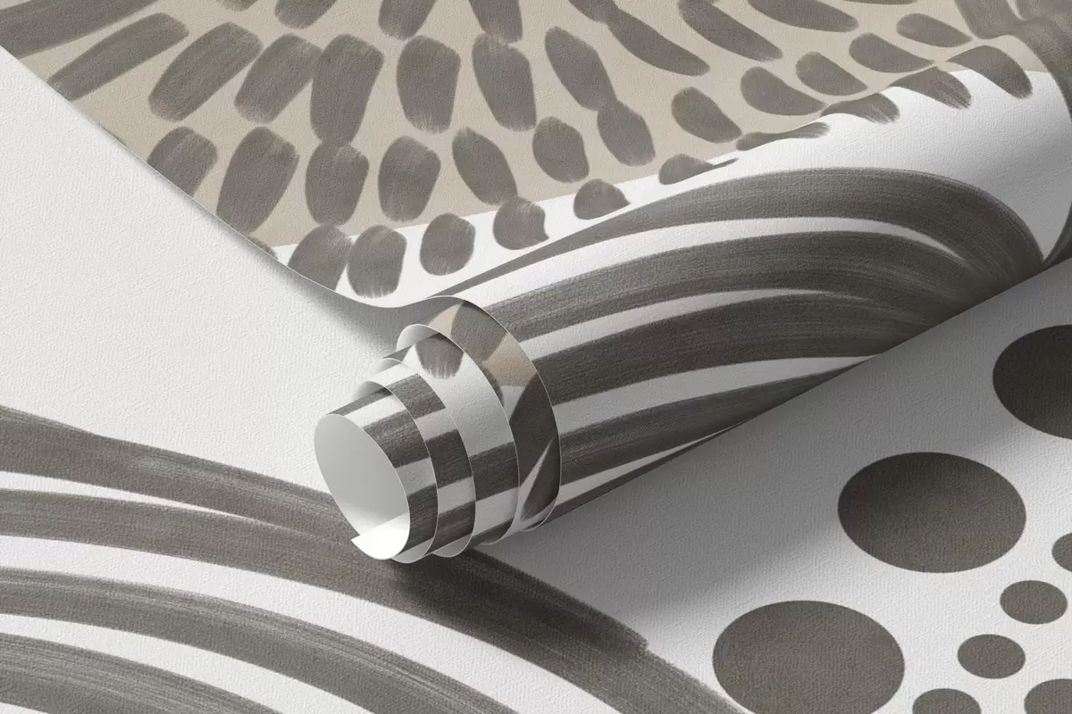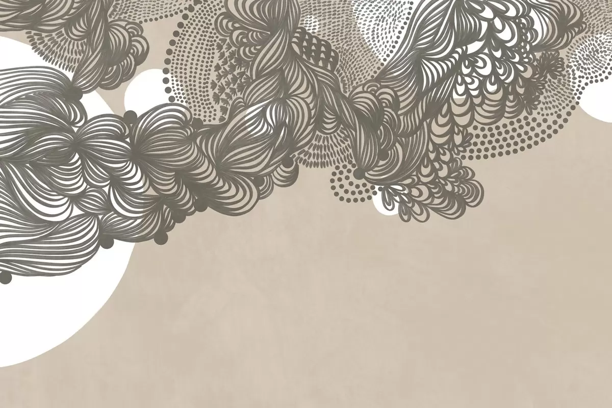 Fototapeten Abstraktes strukturiertes Design auf beigem Hintergrund mit filigranen Linien und gepunkteten Strukturen N° w09621