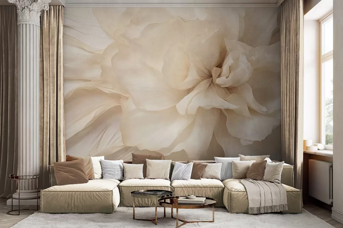 Fototapeten Zarte, helle Blume mit strukturierten, durchscheinenden Blütenblättern und weichem, abstraktem Hintergrund N° w09632