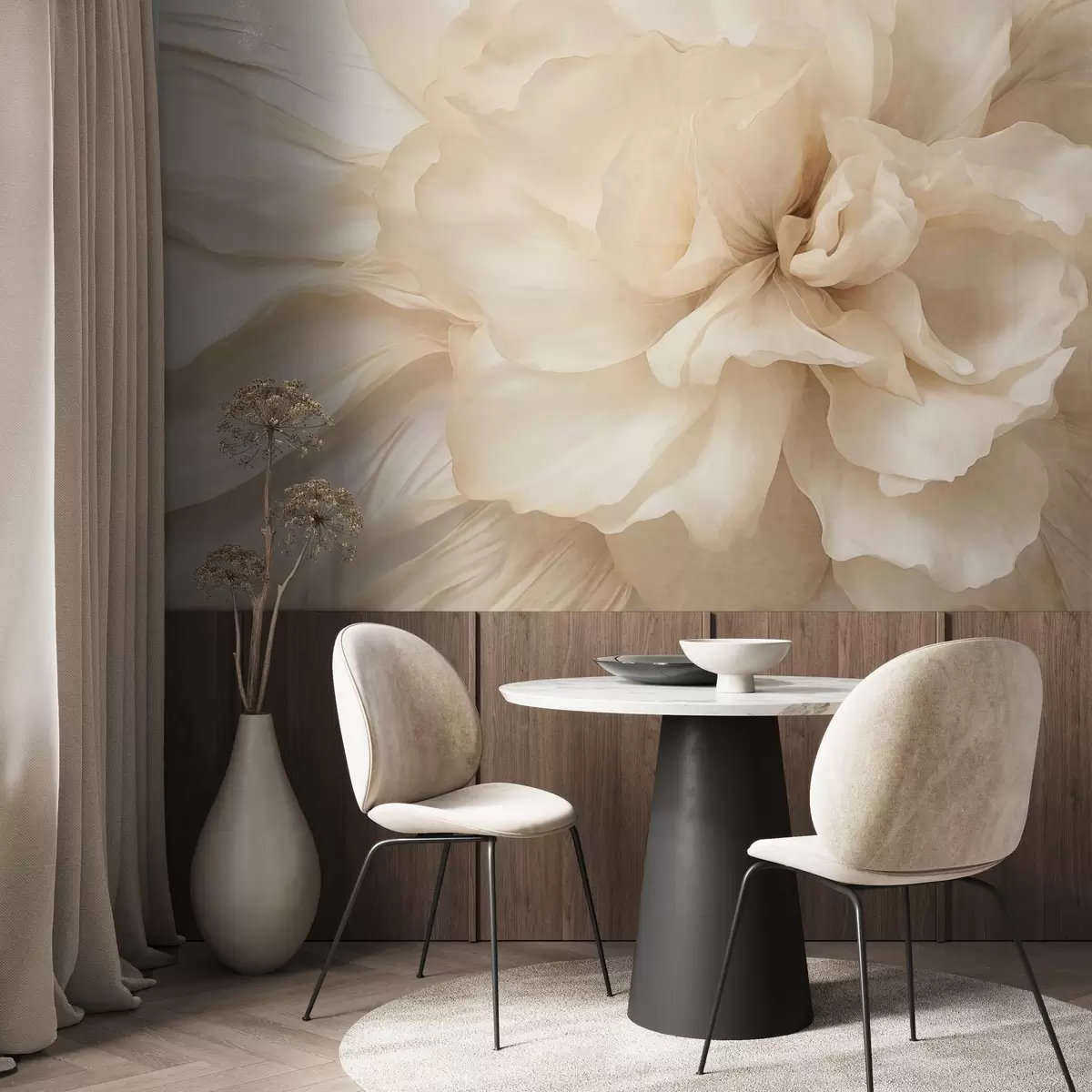 Fototapeten Zarte, helle Blume mit strukturierten, durchscheinenden Blütenblättern und weichem, abstraktem Hintergrund N° w09632