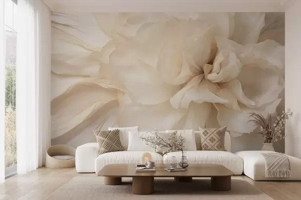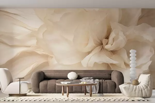 Fototapeten Zarte, helle Blume mit strukturierten, durchscheinenden Blütenblättern und weichem, abstraktem Hintergrund N° w09632