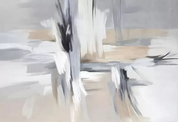 Fototapeten Abstrakter, strukturierter Malstil mit Pinselstrichen in Weiß-, Grau- und Beigetönen N° w09651