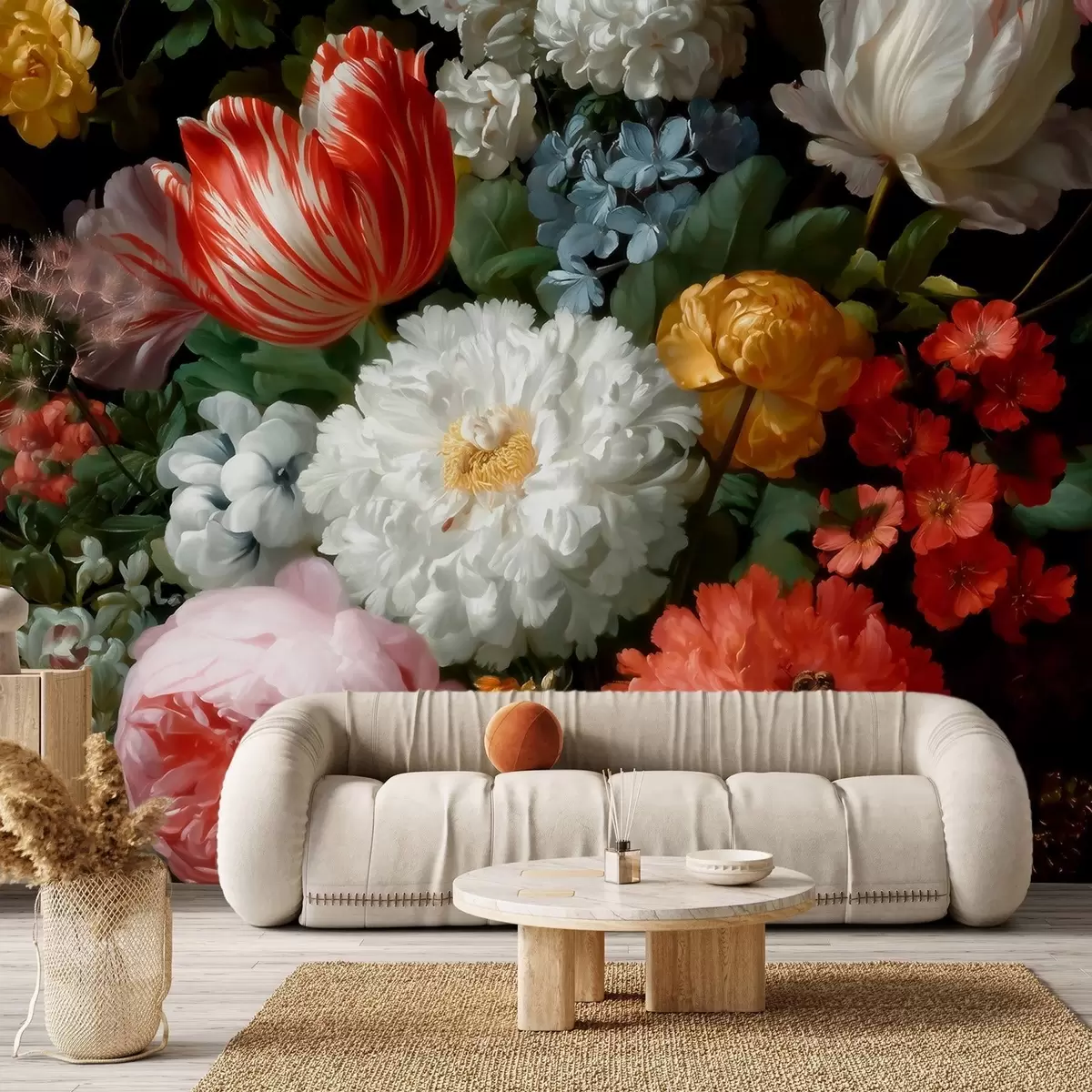 Fototapeten Ein luxuriöses Blumenarrangement, das an einen Frühlingsgarten erinnert N° w09676