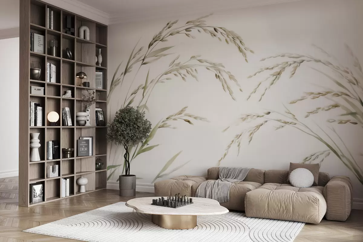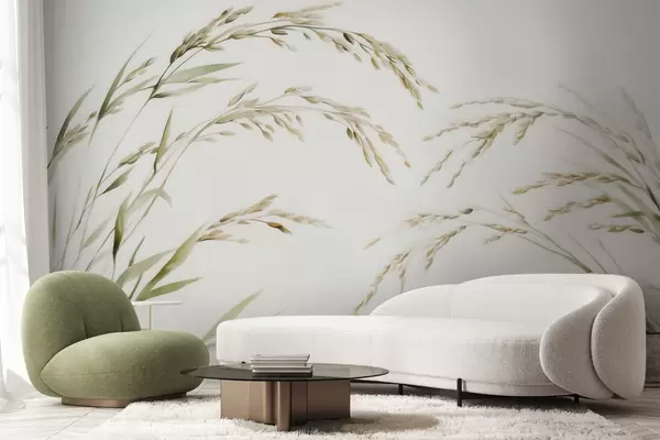 Fototapeten Zarte Getreidegräser in Pastelltönen mit einem sanften Aquarelleffekt N° w09712
