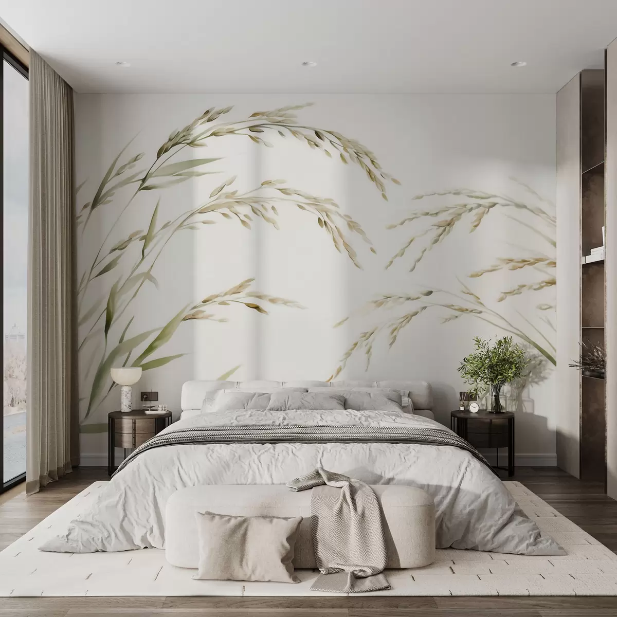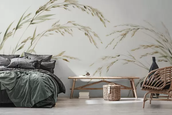Fototapeten Zarte Getreidegräser in Pastelltönen mit einem sanften Aquarelleffekt N° w09712
