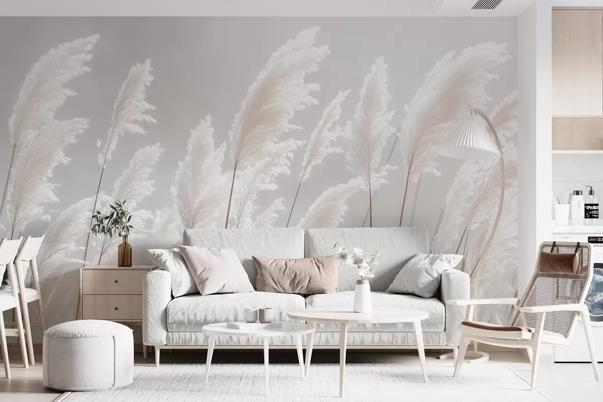 Fototapeten Weiches weißes Pampasgras im sanften Morgenlicht N° w09717
