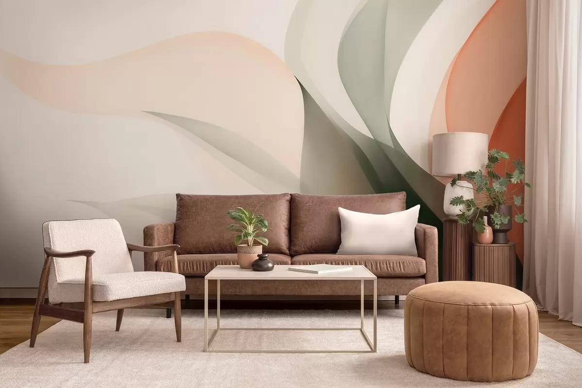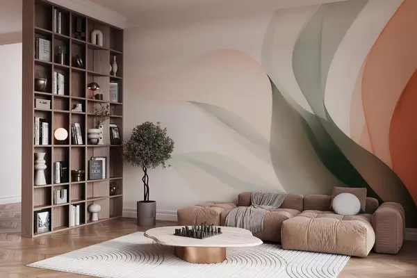 Fototapeten Abstrakte Pastellwellen in Orange- und Grüntönen N° w09718