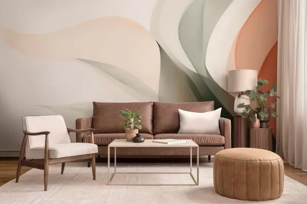 Fototapete Abstrakte Pastellwellen in Orange- und Grüntönen w09718