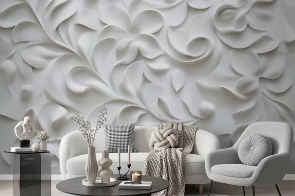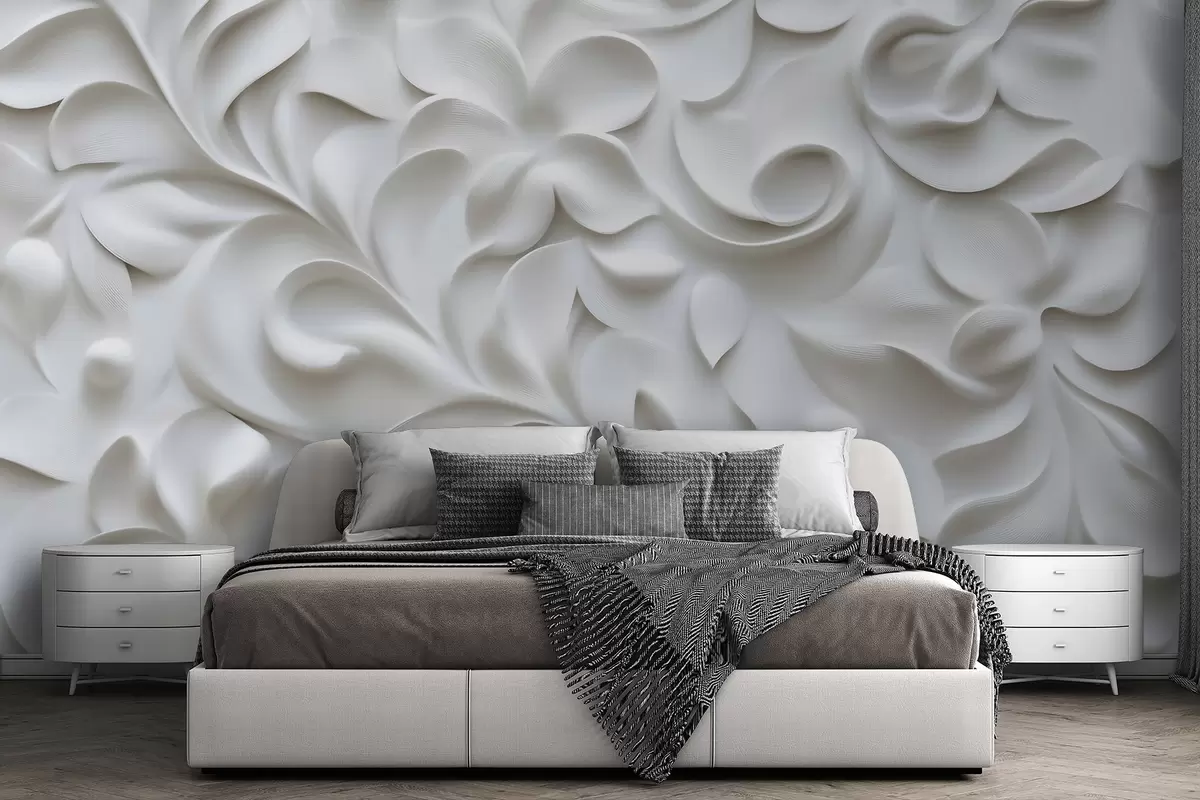 Fototapeten Graues dimensionales Blumenornament N° w09727