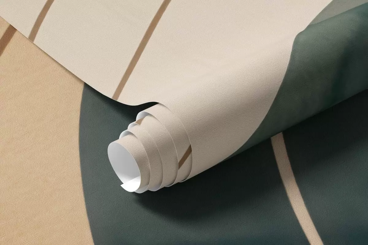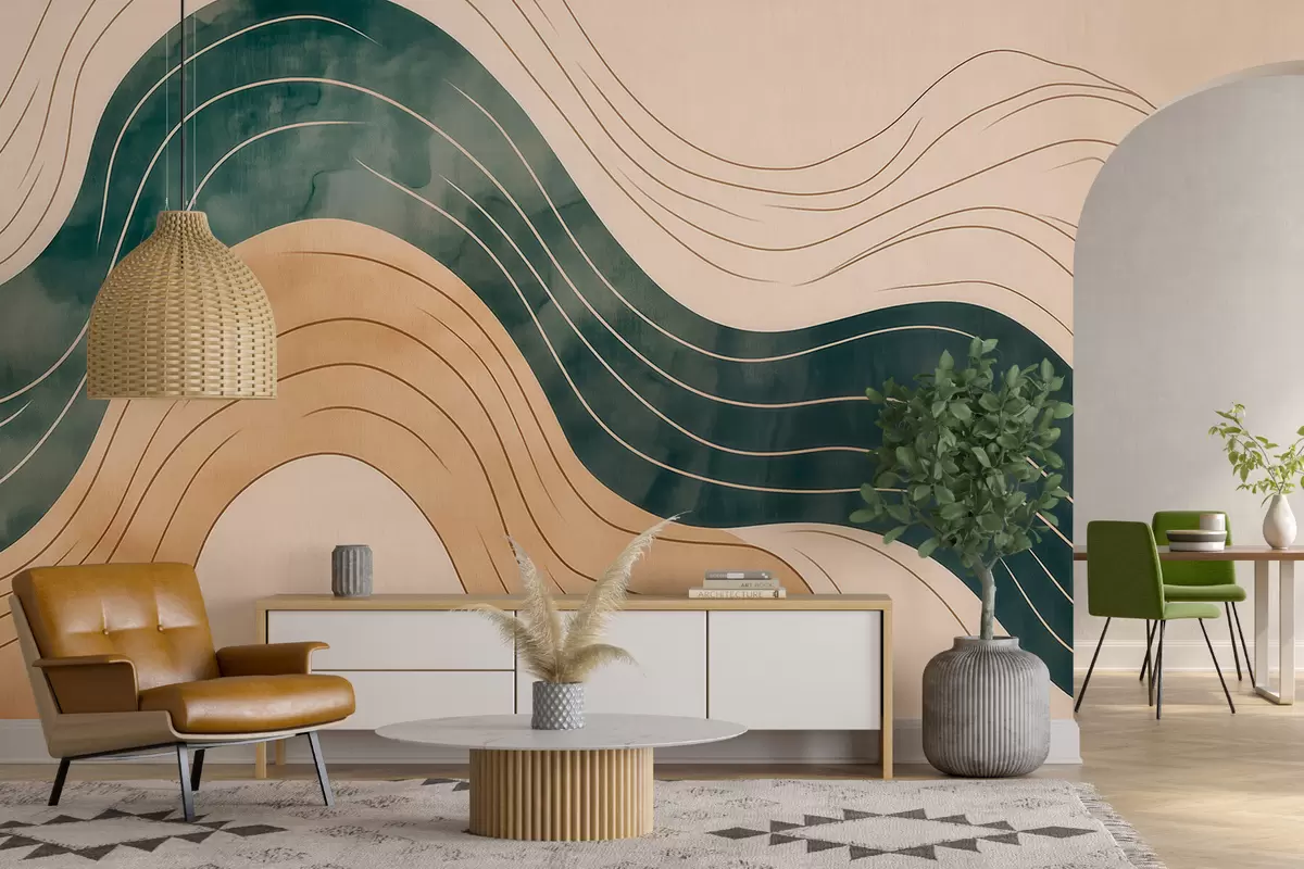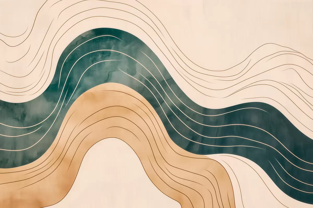 Fototapeten Abstrakte, wellenförmige Linien in natürlichen Sand- und Smaragdtönen N° w09732