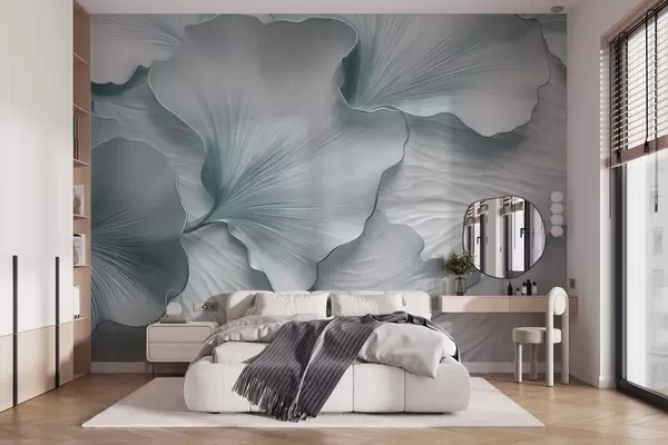 Fototapeten Strukturierte, blau-weiße Ginkgoblätter mit zartem Bio-Aufdruck N° w09741v1