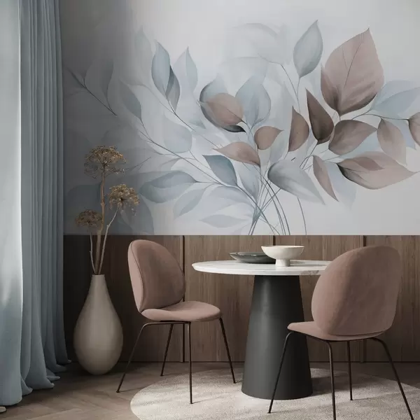 Fototapeten Abstrakte durchscheinende Blätter in Blau-, Beige- und Brauntönen, strukturierte Kunst N° w09744v1
