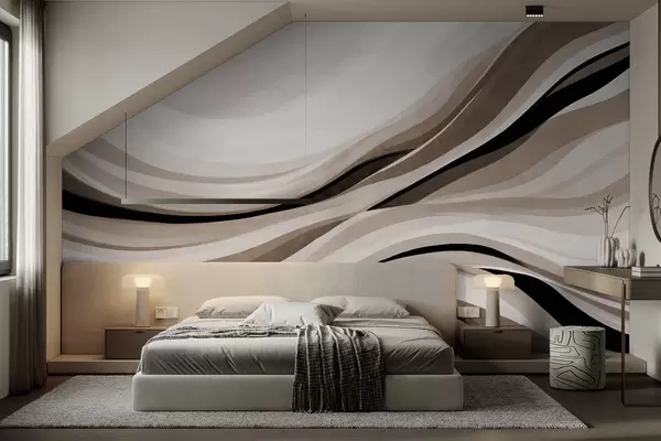 Fototapeten Abstrakte Wellenlinien in Beige- und Schwarztönen vor hellem Hintergrund, strukturierte Kunst N° w09748