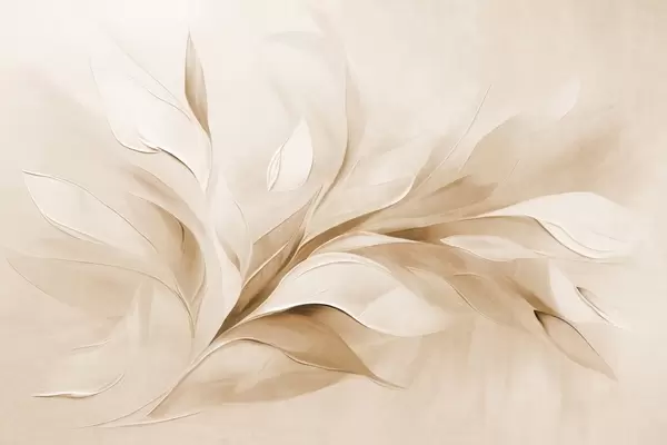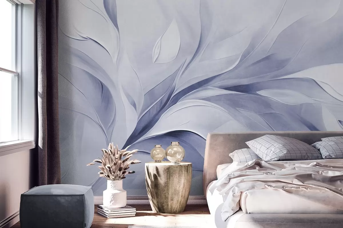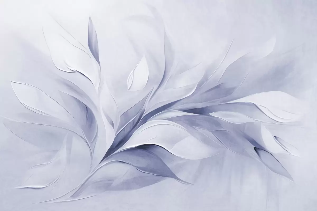 Fototapeten Abstrakter, strukturierter Malstil mit hellblauen und weißen, fließenden Blättern N° w09765