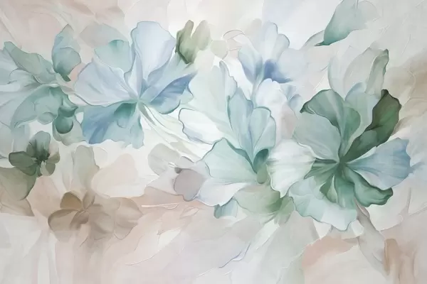 Fototapeten Abstrakte Fantasieblumen in Rosa-, Pfirsich- und Lavendeltönen im Malstil, strukturierte Kunst N° w09767