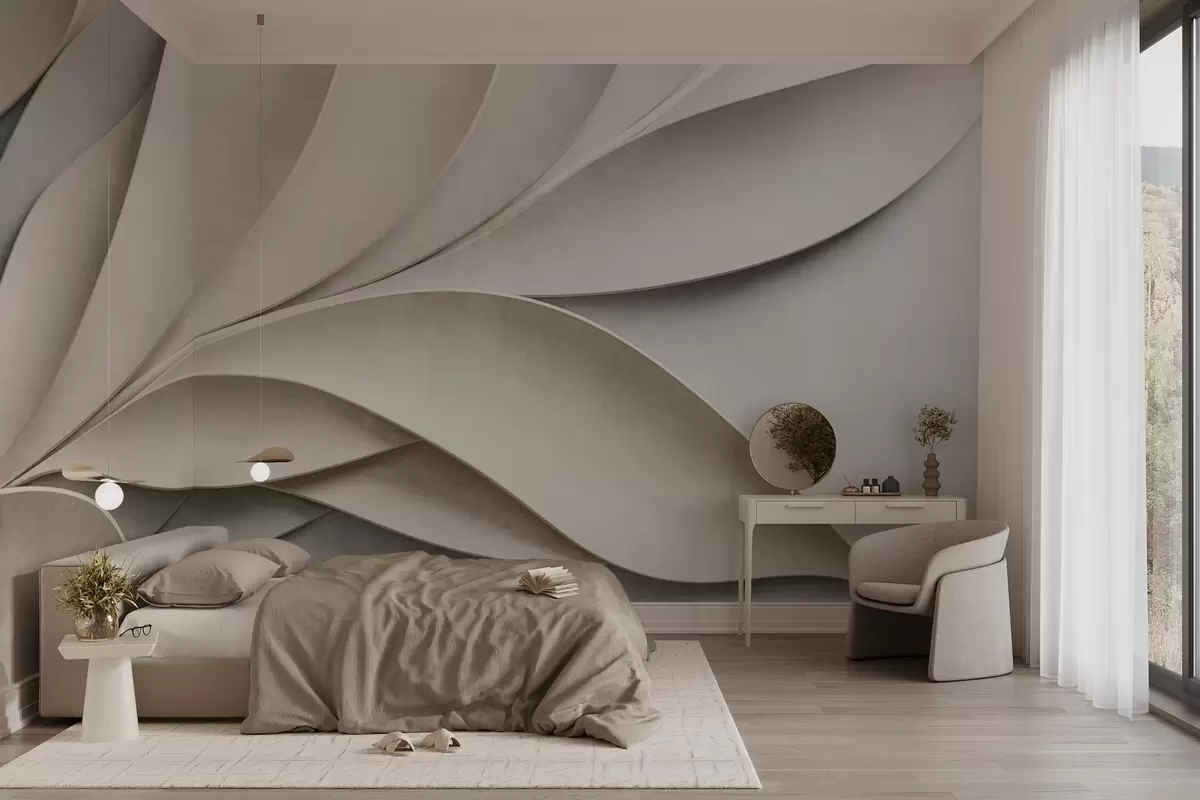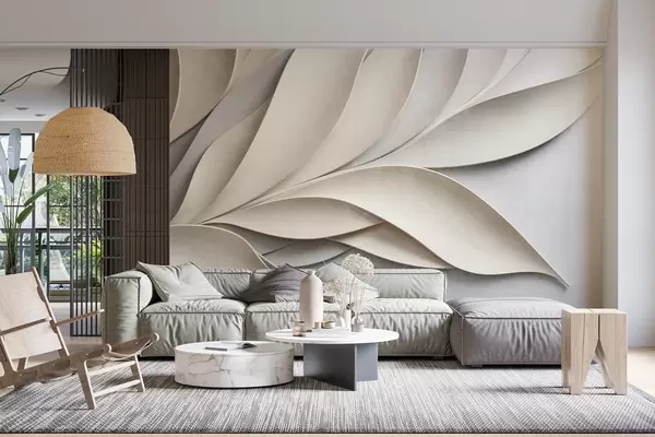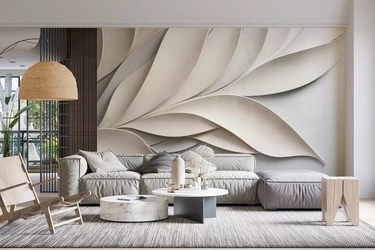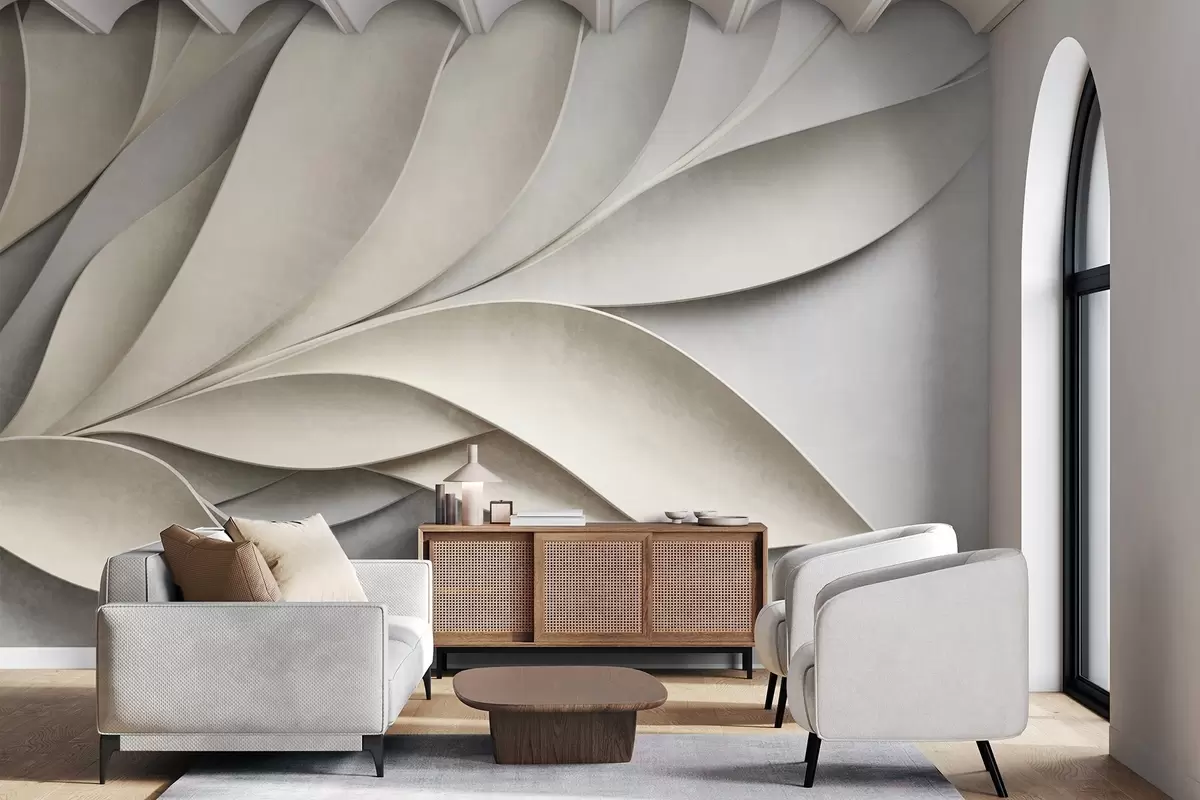 Fototapeten Abstrakte Blätter in Beige und Grau, strukturierte moderne Kunst N° w09769