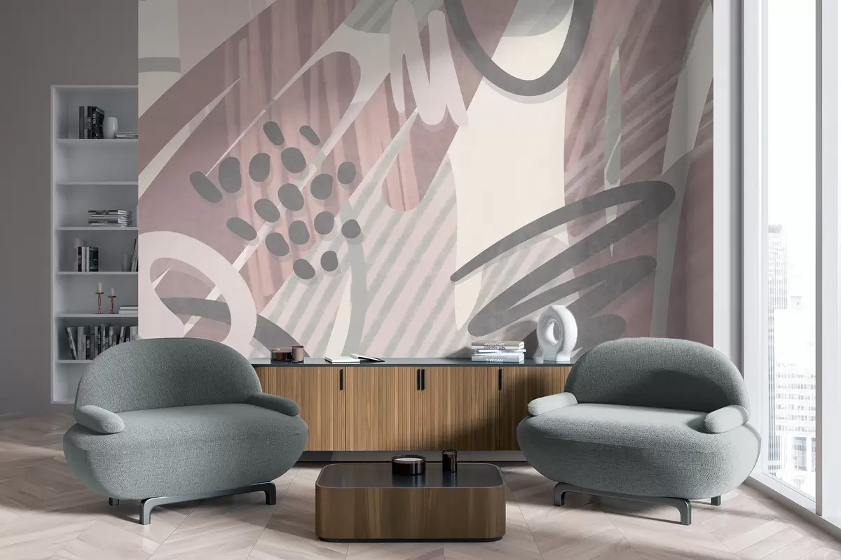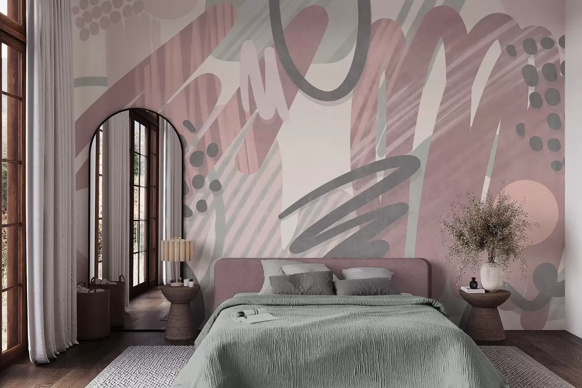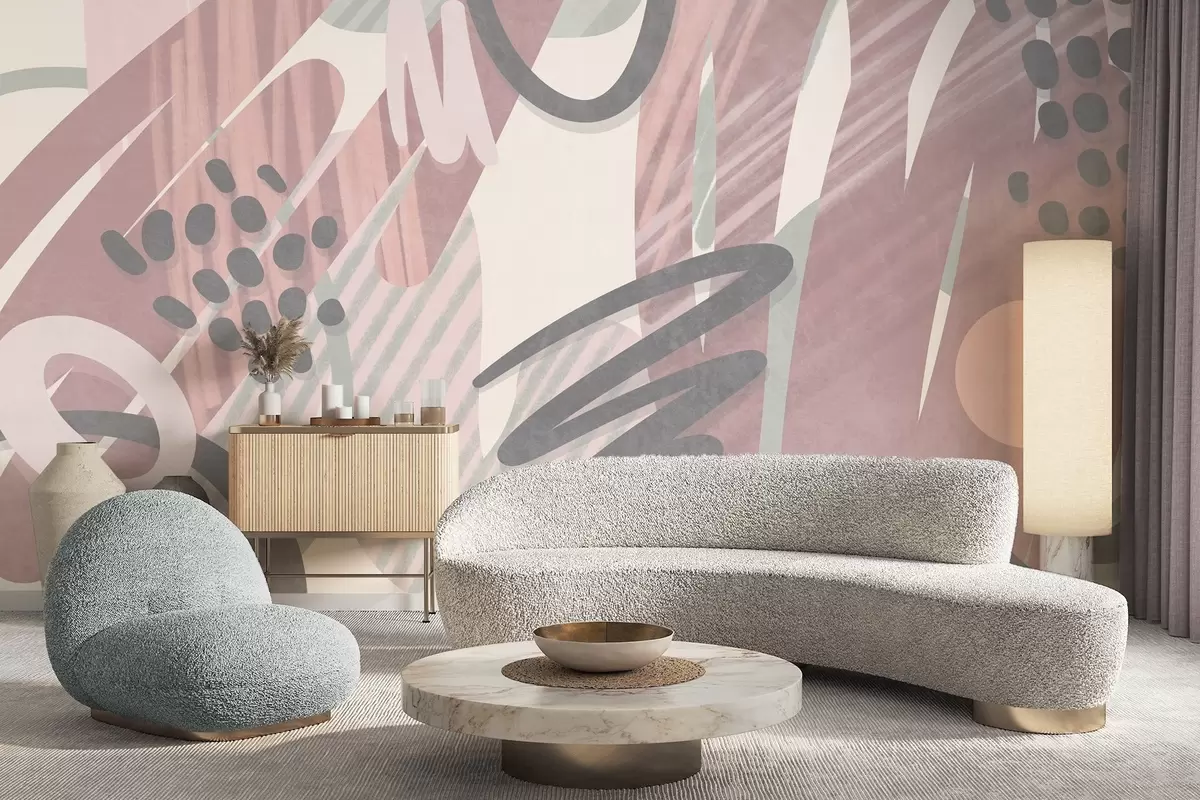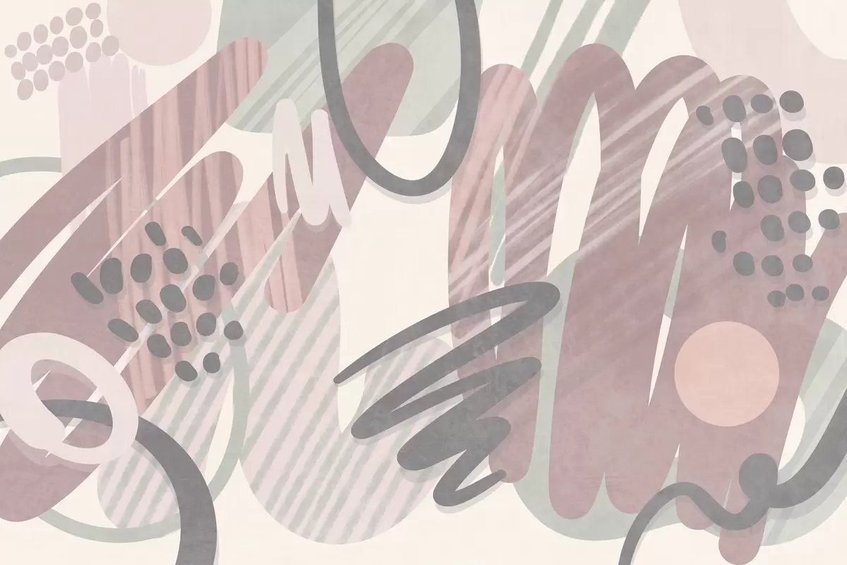Fototapeten Abstrakter Strukturdruck mit organischen Formen, Kritzeleien und Punkten in gedeckten Pastelltönen N° w09774v1