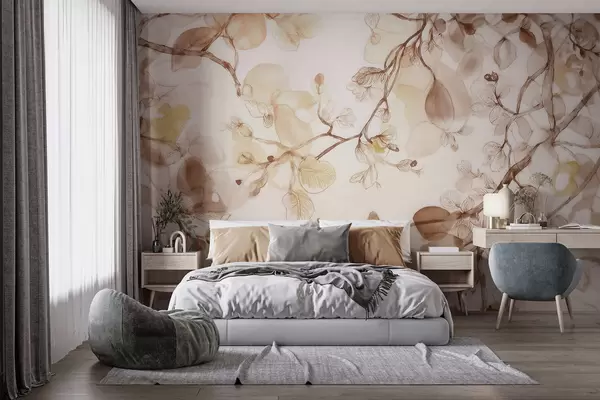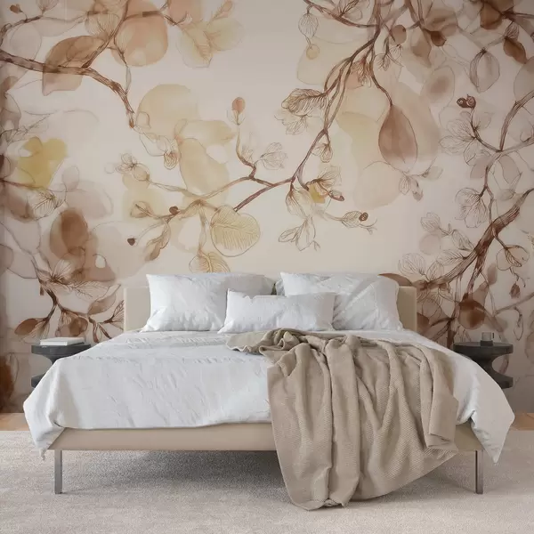 Fototapeten Luftige, herabhängende Zweige in Beigetönen im Aquarellstil N° w09795