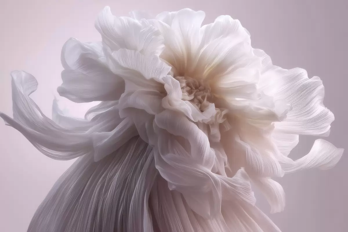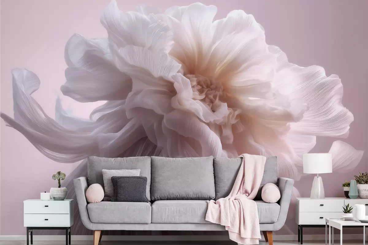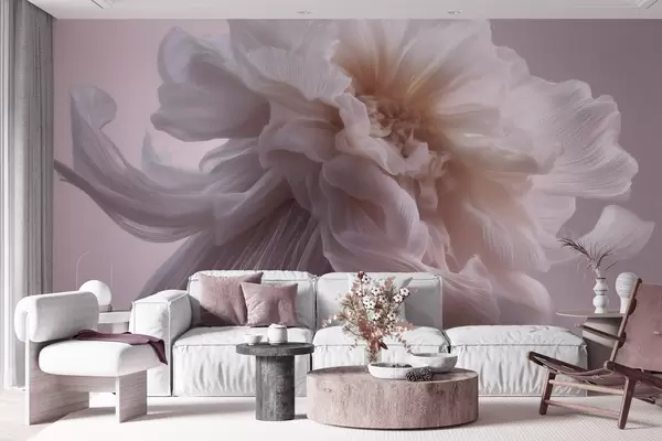 Fototapeten Voluminöse Seidenblume in zarten Rosa- und Beigetönen N° w09809