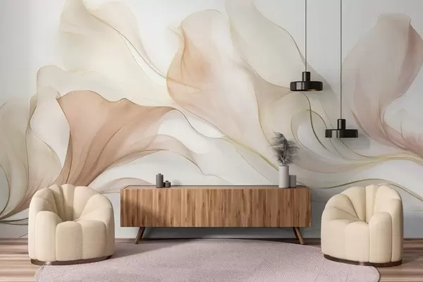 Fototapeten Abstrakte, fließende Textur in Pfirsich- und Cremetönen mit zarten Linien N° w09815