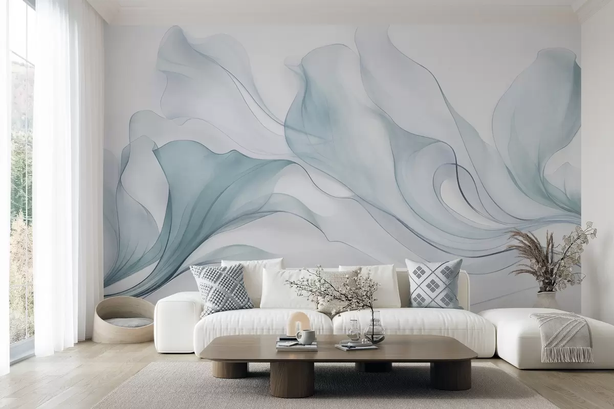 Fototapeten Abstrakte, fließende Textur in Blautönen mit zarten Linien N° w09815v1