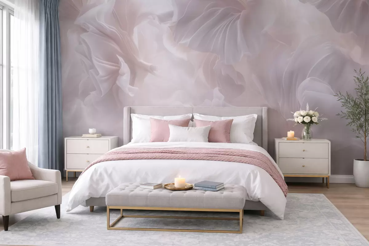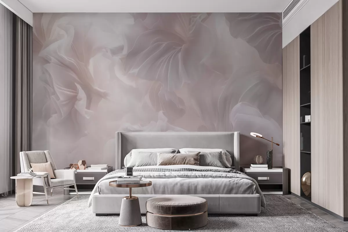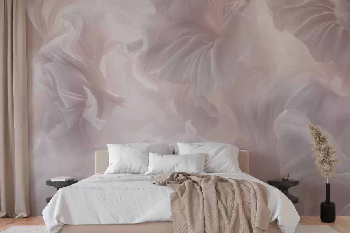 Fototapeten Abstrakte Blumenmotive mit fließenden Blütenblättern in Pastelltönen N° w09841