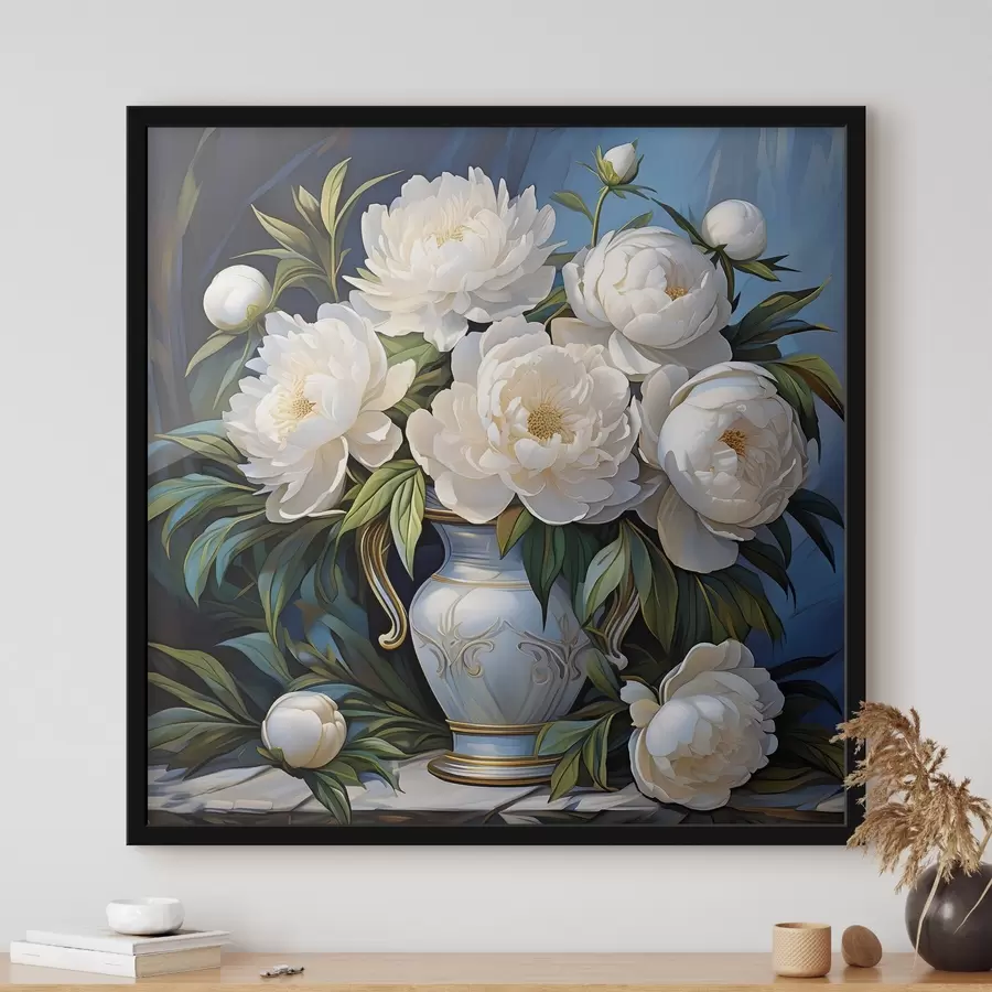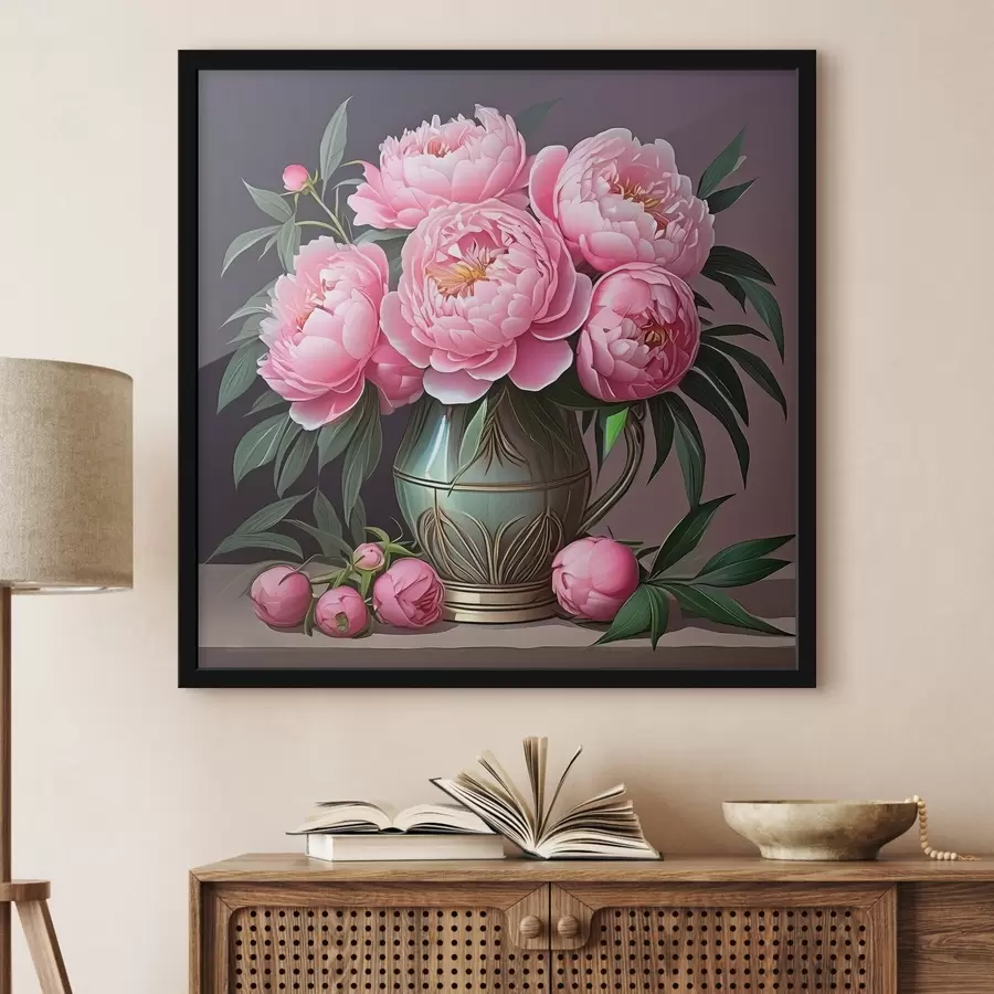 Drei Pfingstrosen mit Tau im Morgenlicht