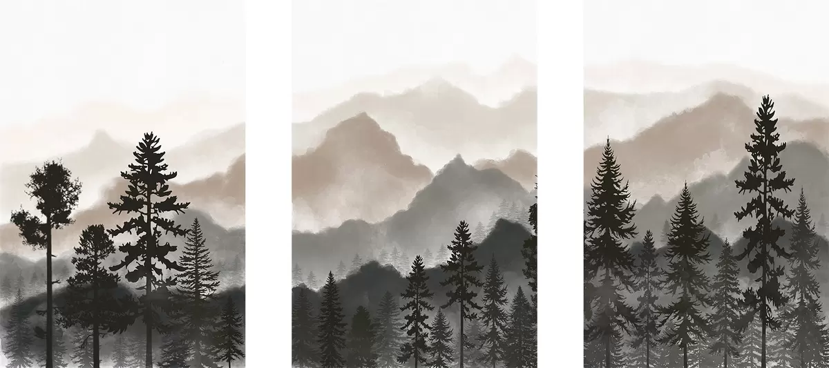 Poster Ruhige Berglandschaft mit Bäumen Nr d00244v1
